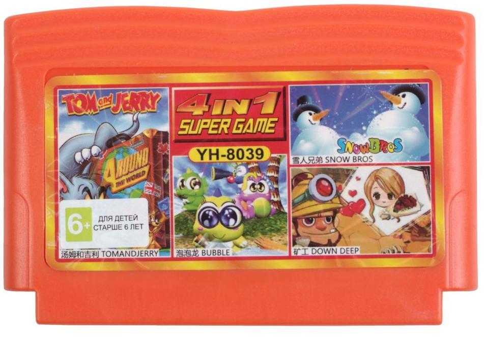 8Bit Игра 4в1 Tom & Jerry, Snow Bros, Down Deep, Bubble (английские версии)