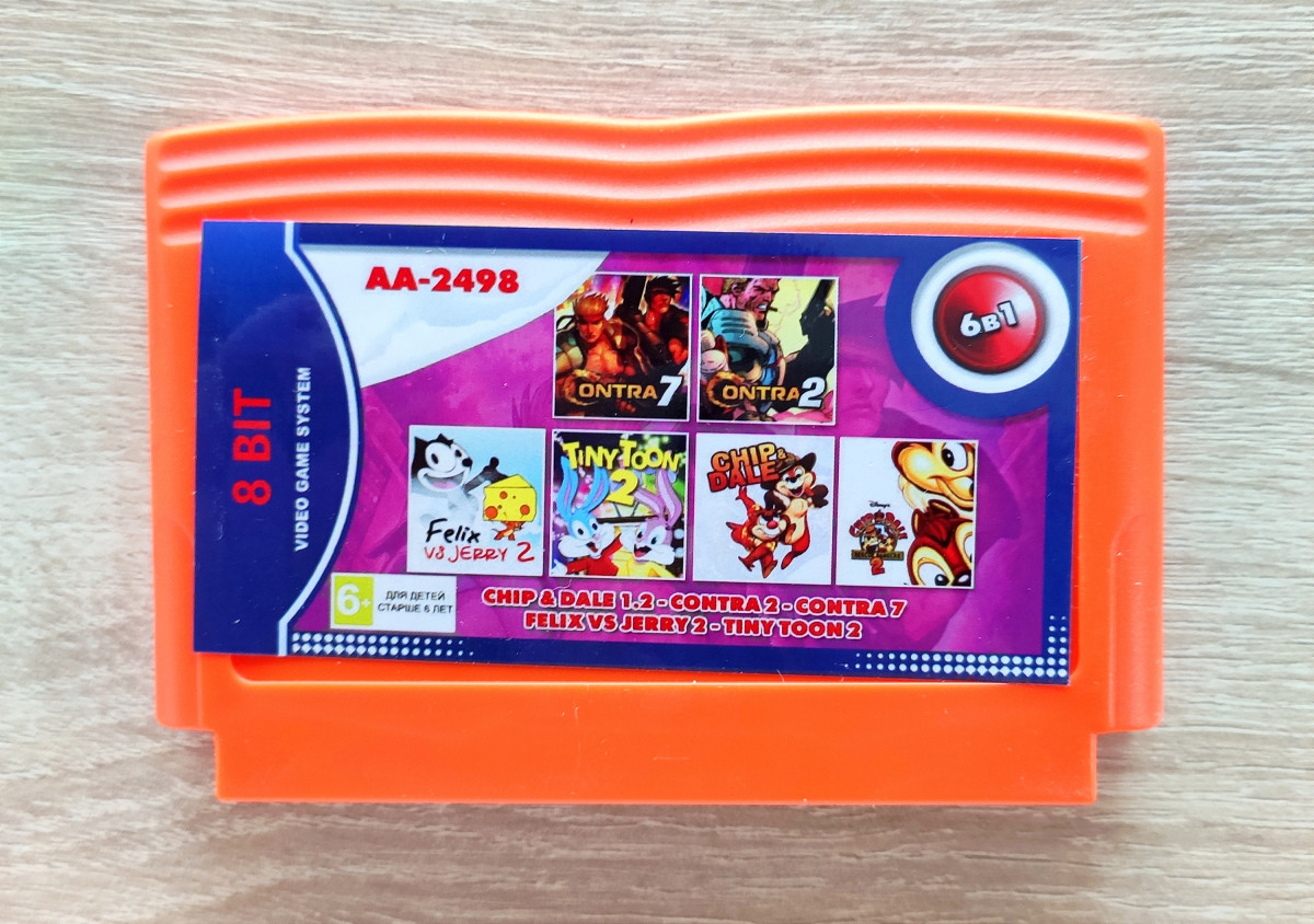 8Bit Игра 6в1 Chip & Dale 1+2, Contra 2+7, Felix & Jerry 2, Tiny Toon 2 (английские версии)